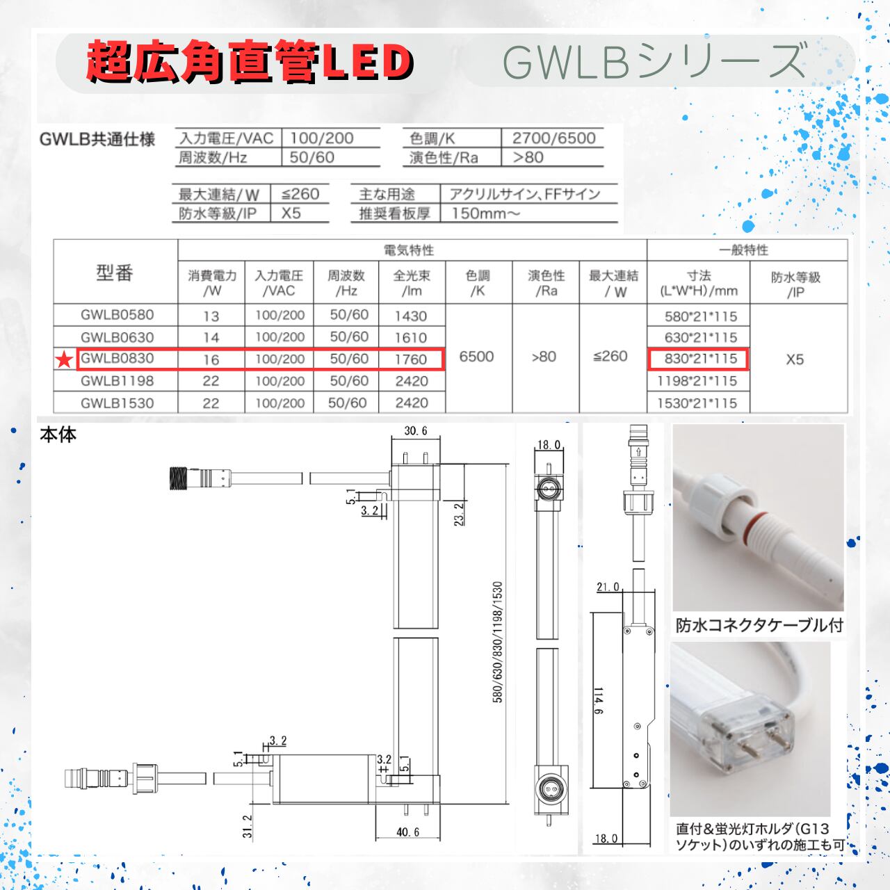 “内照/行灯用 超広角直管LEDバー” 32W型 (L=830) GWLBシリーズ