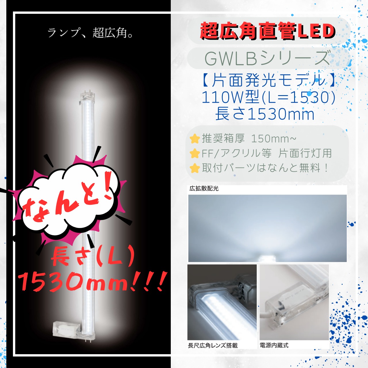 当商品『“内照/行灯用 超広角直管LEDバー” 110W型 (GWLB1530/L=1530)』は、