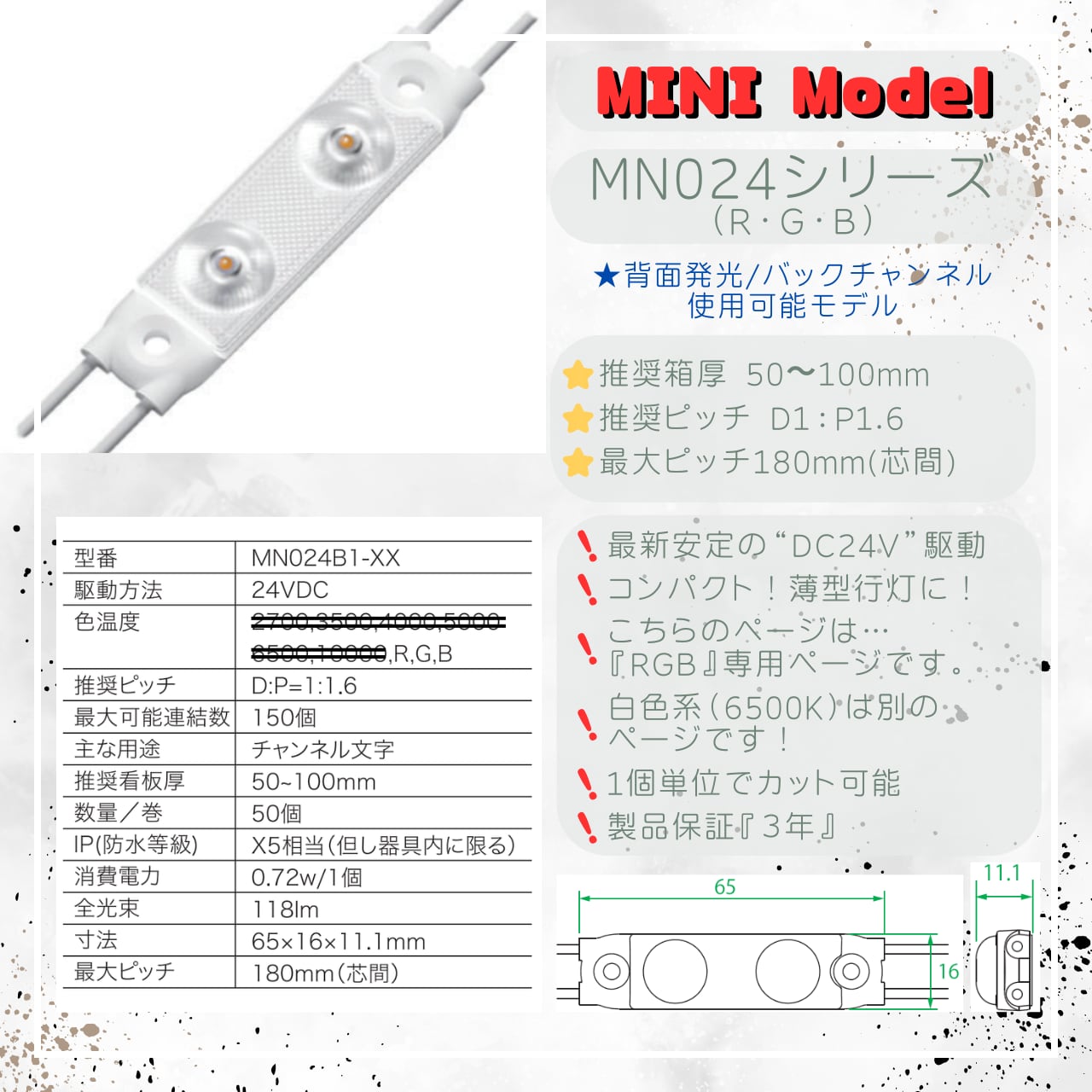 MN024シリーズの『R(赤)/G(緑)/B(青)』を販売しています。
