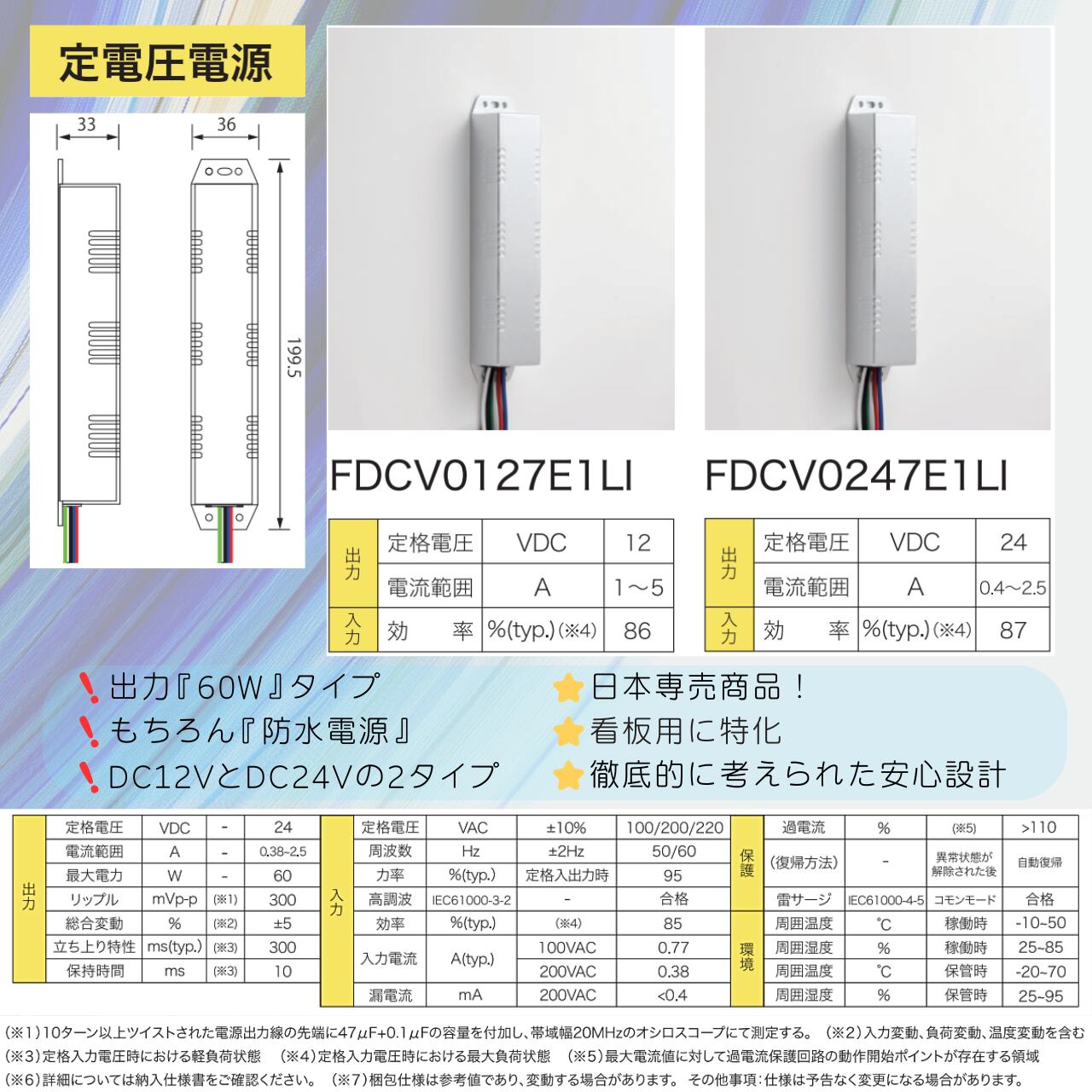 〜定電圧〜 スイッチング電源 「60W型」DC12V/DC24V